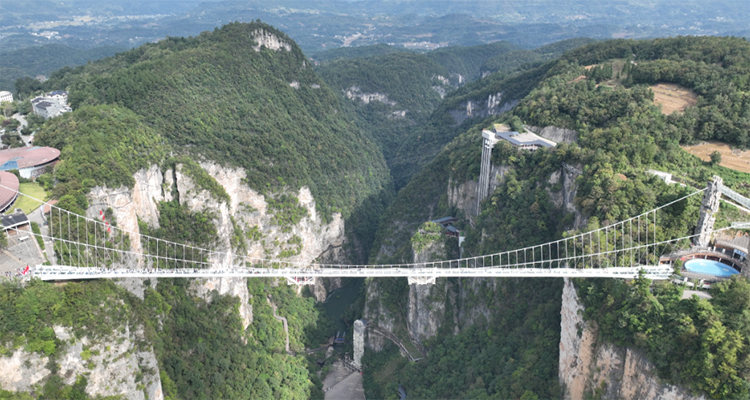山下游客集散中心→(擺渡車)→景區(qū)游客中心→玻璃橋(世界最高最長(zhǎng)之一,恐高慎入)→橋東體驗(yàn)區(qū)(蹦極、滑索等)→彩虹廣場(chǎng)→沿溪流漫步(土匪洞、神泉湖等),欣賞瀑布飛流,最后乘神泉湖游船出峽谷。
